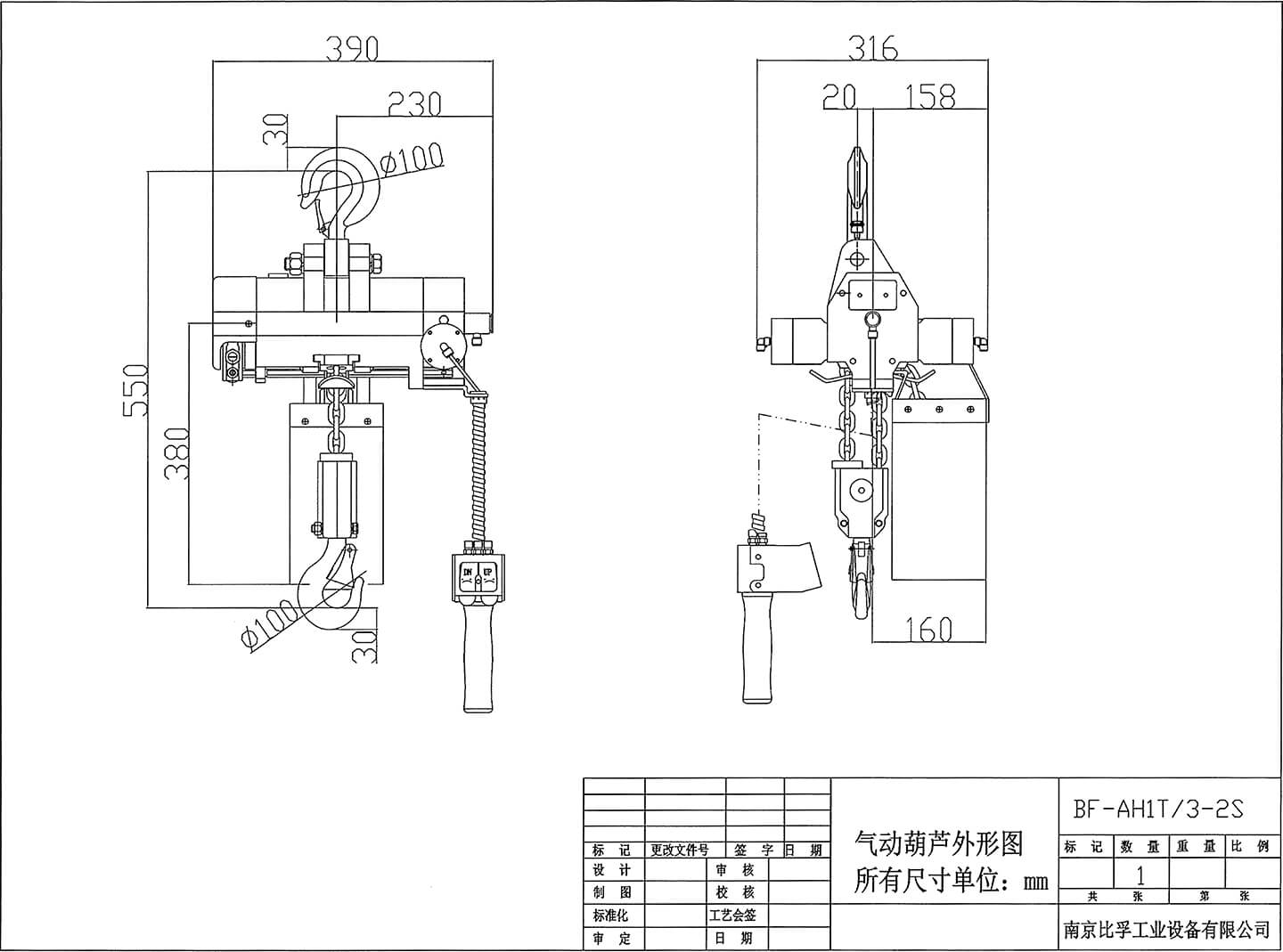 氣動葫蘆型號:BF-AH1T/3-1S