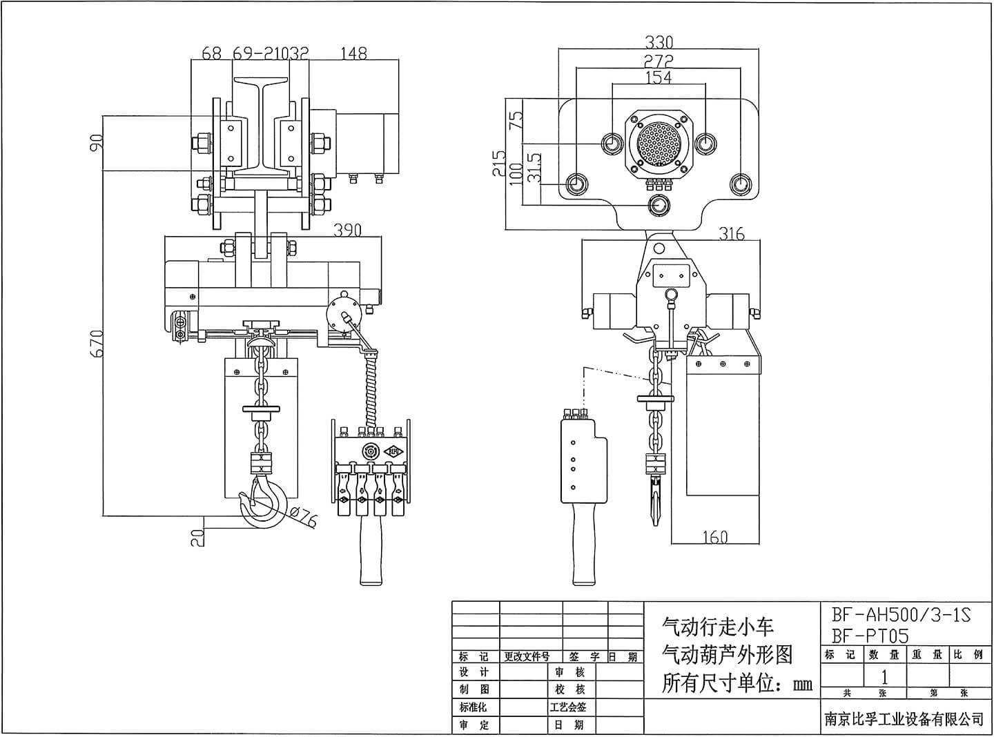 | 配套氣動葫蘆型號 | BF-AH500/3-1S | |