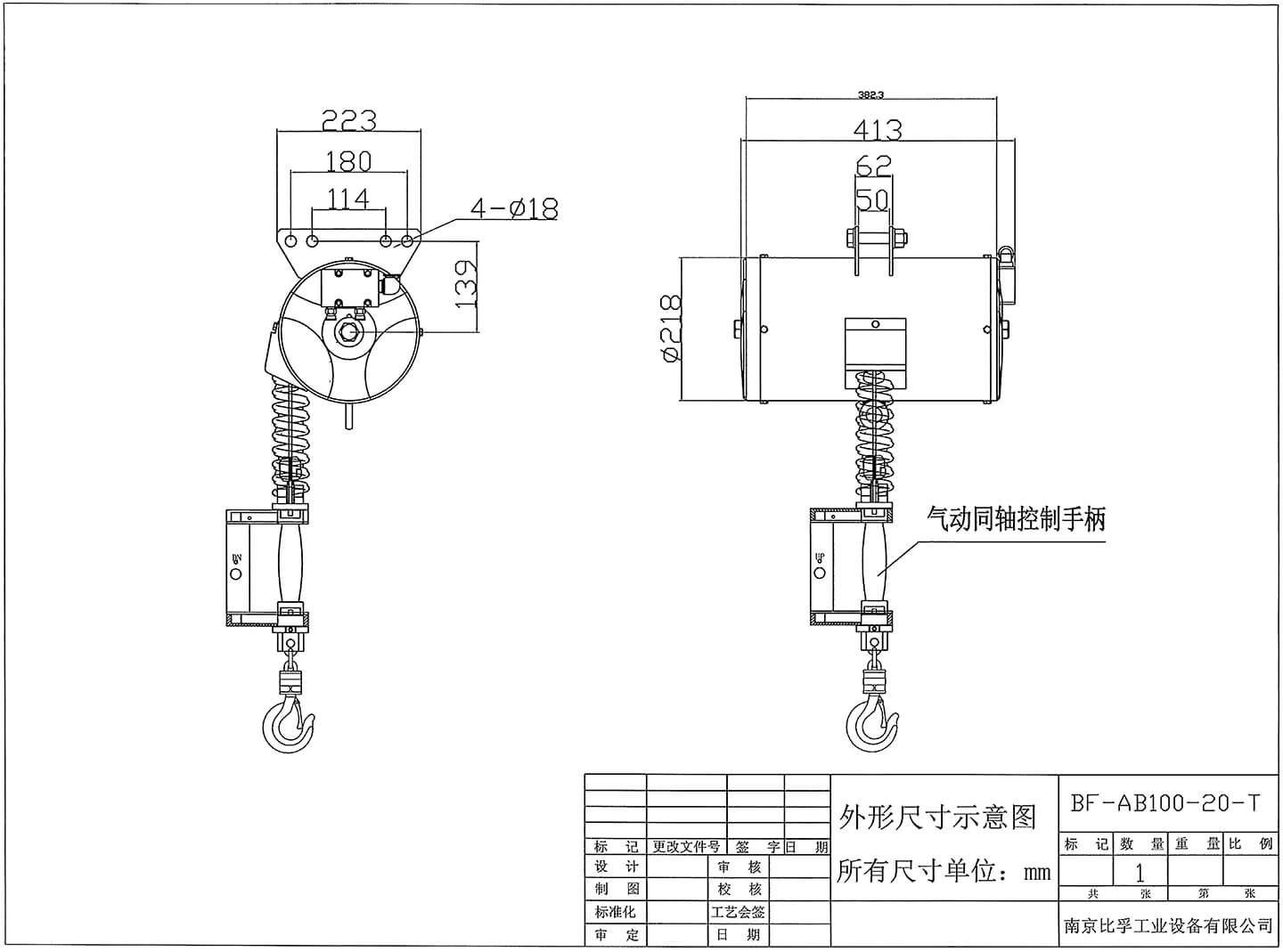 氣動平衡吊標準額定工作氣壓是0.7Mpa(100psi)。