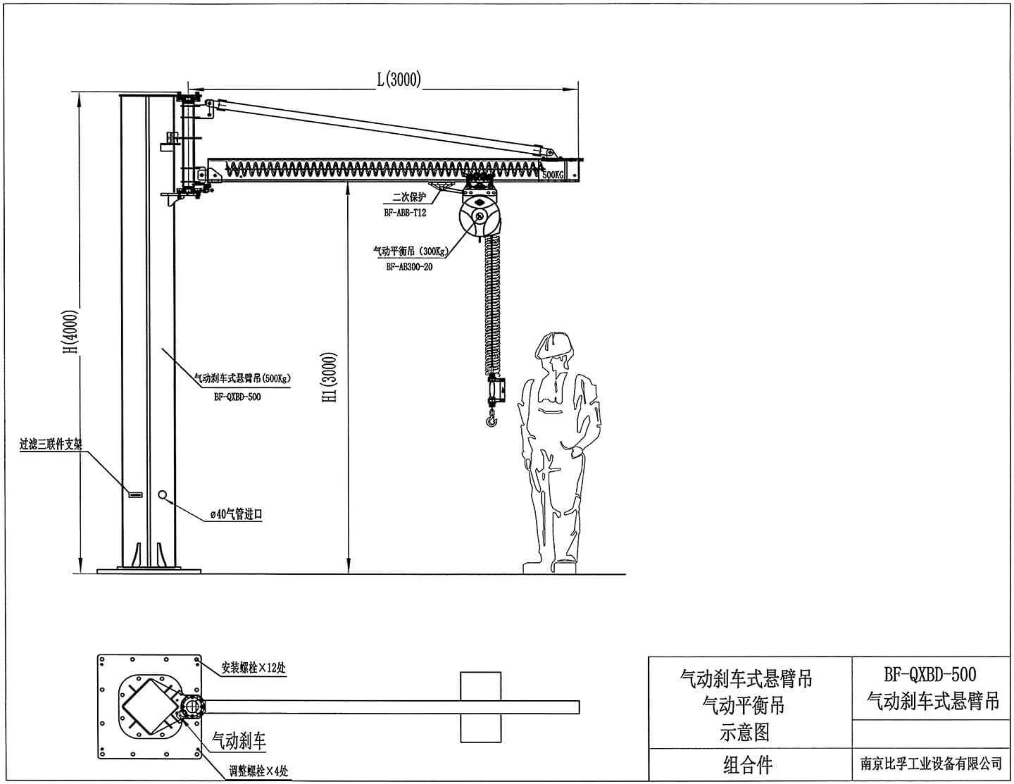| 型號 | BF-QXBD-500 | 氣動剎車式懸臂吊 |