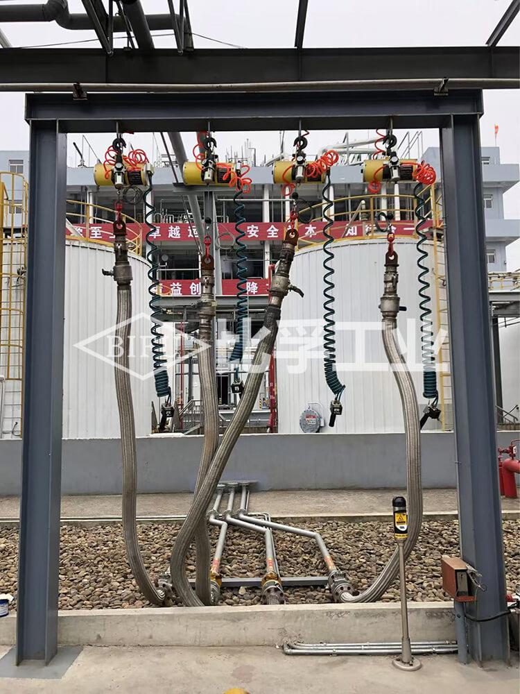 化工原料轉(zhuǎn)運(yùn)輸送線氣動(dòng)平衡吊案例