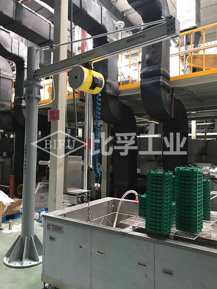 氣動平衡吊配自立式懸臂吊應用案例。